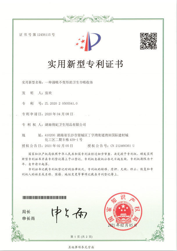 卫生巾巾体外观专利
