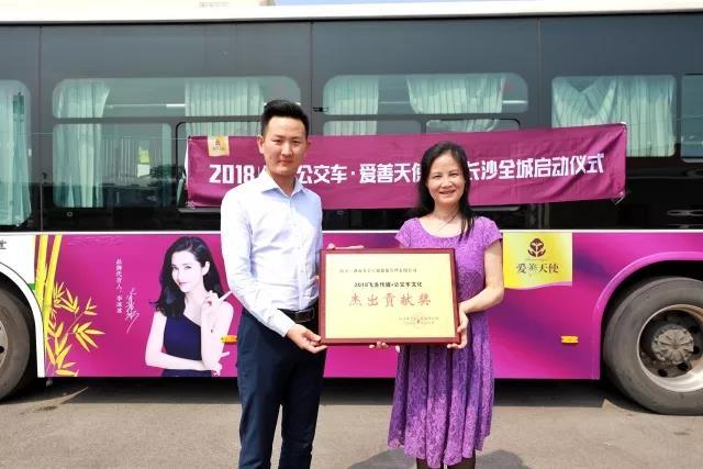 飞龙公交车向爱善天使颁发了“2018飞龙传媒·公交车文化杰出贡献奖”这一特殊大奖,旨在表彰爱善天使为市内公交车事业做出的贡献。