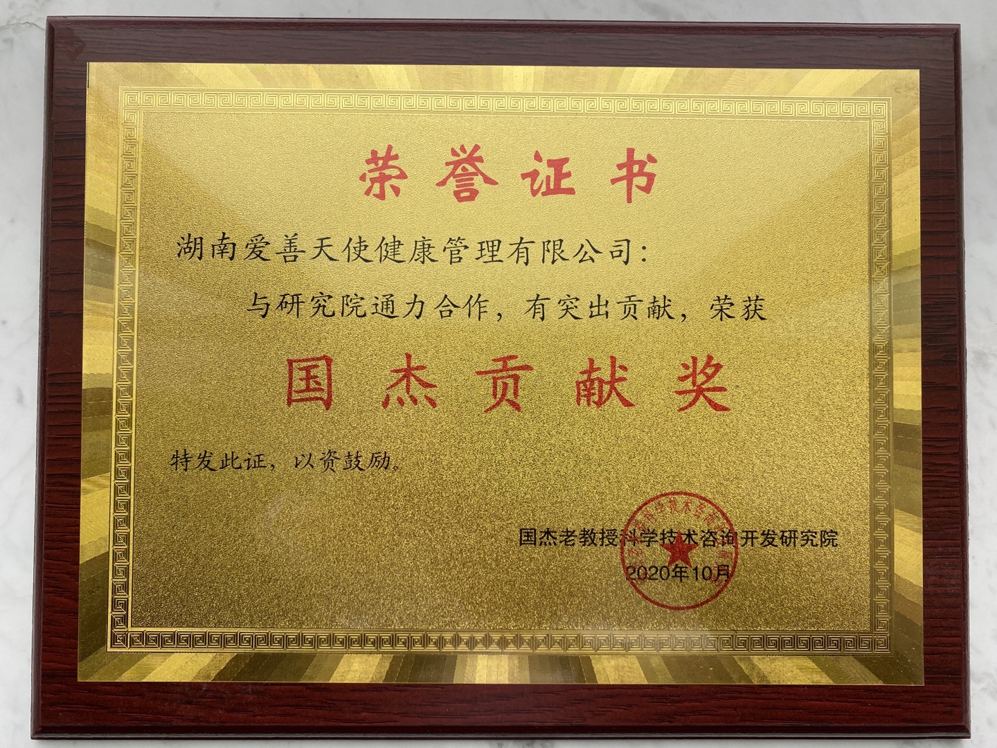 为了发挥我国顶级科学家、老教授们的余热。2000年9月经国家科学技术部批准、民政部注册,中国老教授协会组建了国杰老教授科学技术咨询开发研究院(以下简称国杰研究院)。今年是国杰研究院建院20周年,10月30日,国杰研究院在北京西郊宾馆举办了纪念大会暨“增强创新动力”论坛,并给一批做出贡献的代表性的个人和单位颁发了荣誉奖项,爱善天使集团同辽宁省鞍山市科协、迈格钠磁动力股份有限公司等单位一道,被授予“国杰贡献奖”荣誉称号。