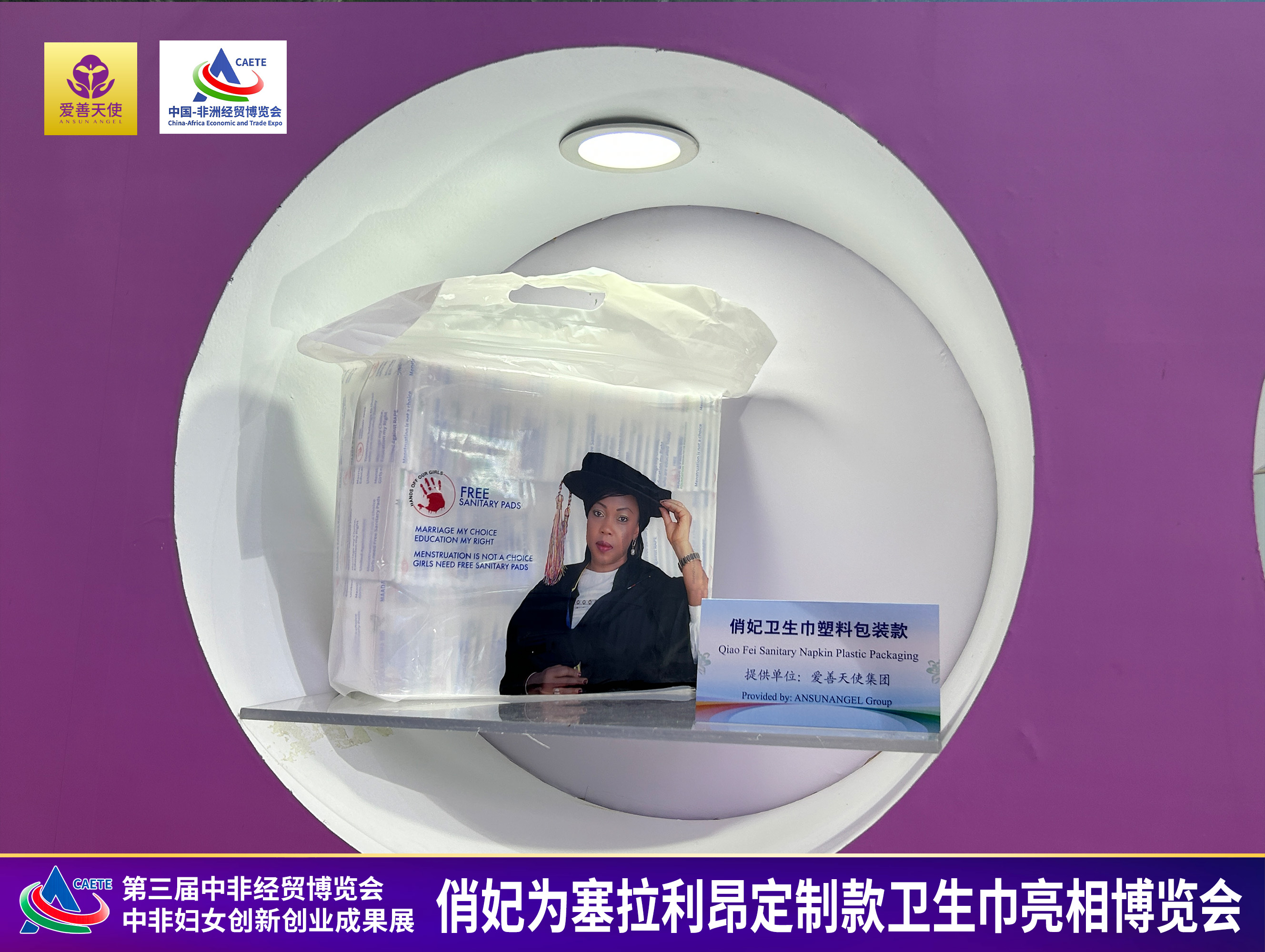 6月29日,“共谋发展,共享未来”第三届中国-非洲经贸博览会在湖南长沙开幕,在这场中非众多优质产品和品牌一同亮相的国际舞台上,爱善天使集团俏妃为塞拉利昂定制款卫生巾在中非妇女创新创业成果展上亮相,展示了中国女性健康产品的优良品质。