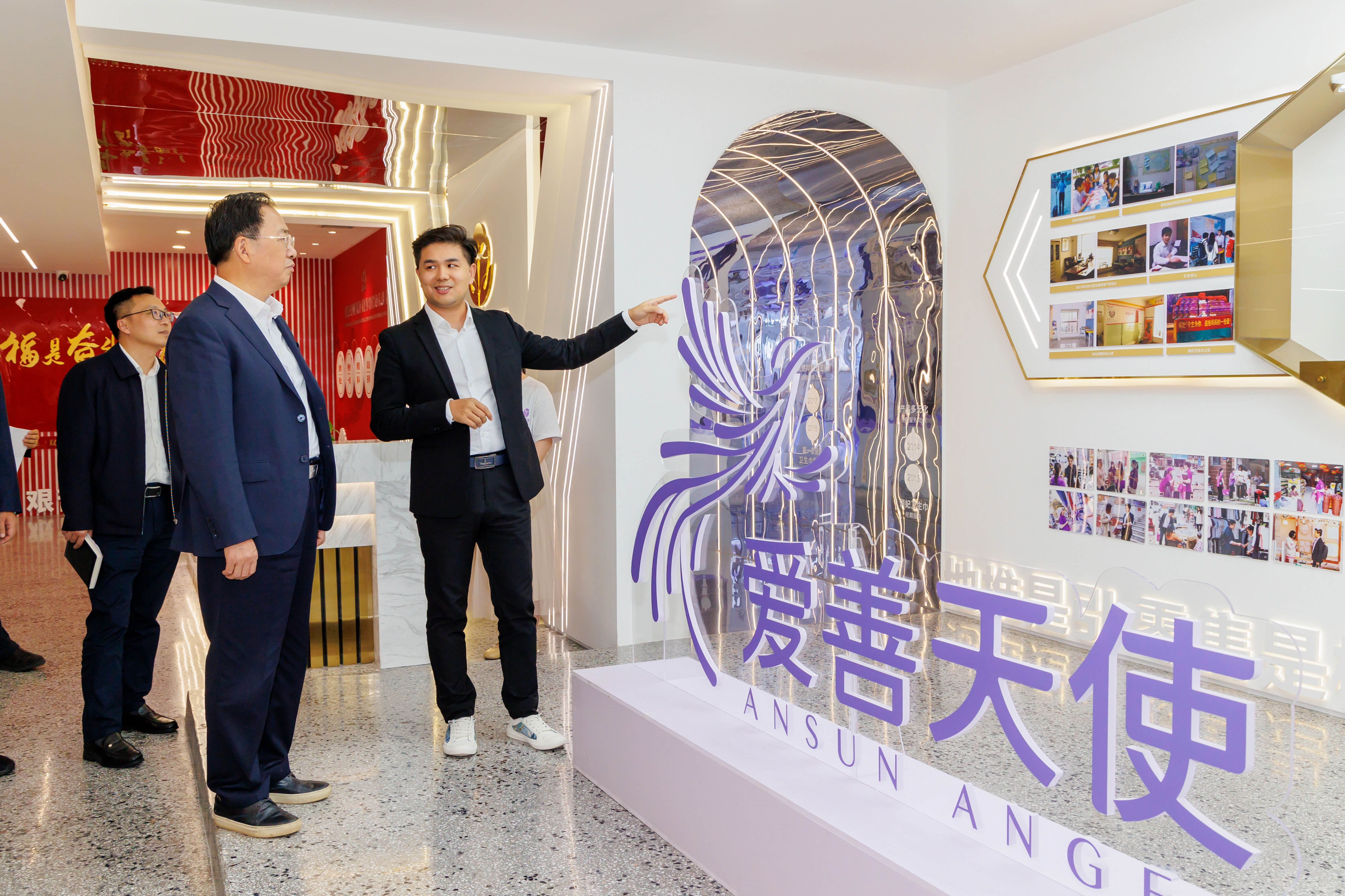 谭勇书记对爱善天使集团取得的成绩给予高度评价并与张帆深入交流,了解企业经营发展现状和产品研发创新情况,询问发展困难与诉求,勉励企业坚定发展信心,做强主业、持续创新,为自身做大做强不断增添新动能。